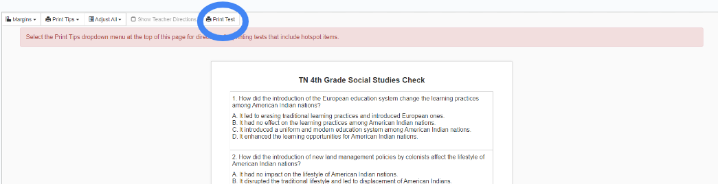 There are two ways to print an assessment: through the assignments portal and from the test list. This article will explain how to print an assessment through the assignments portal.