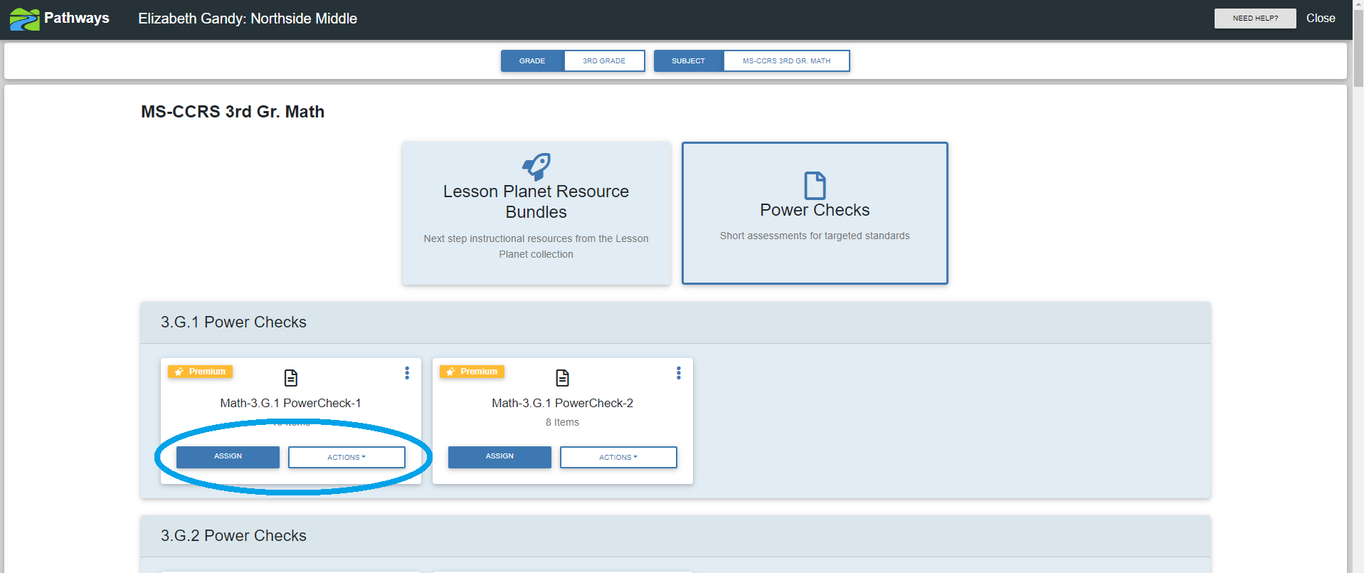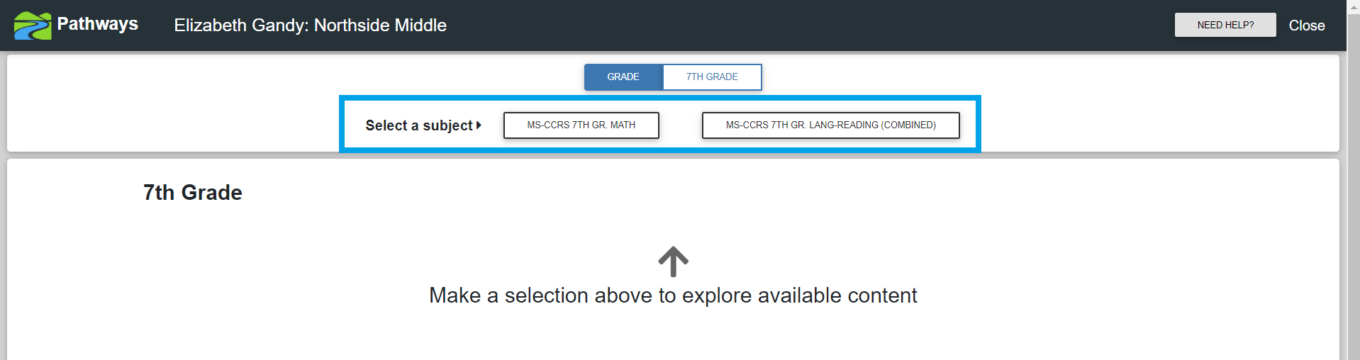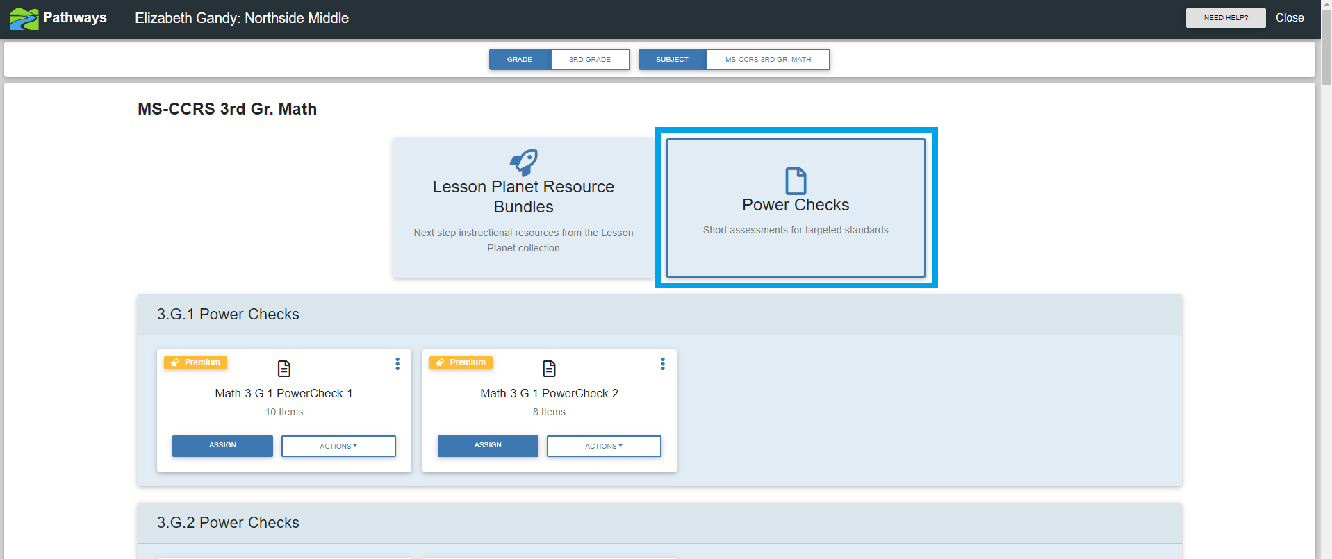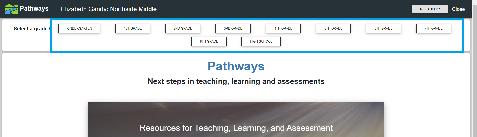 3. At the top of the screen, select the grade level for which you wish to view Pathways Powerchecks.