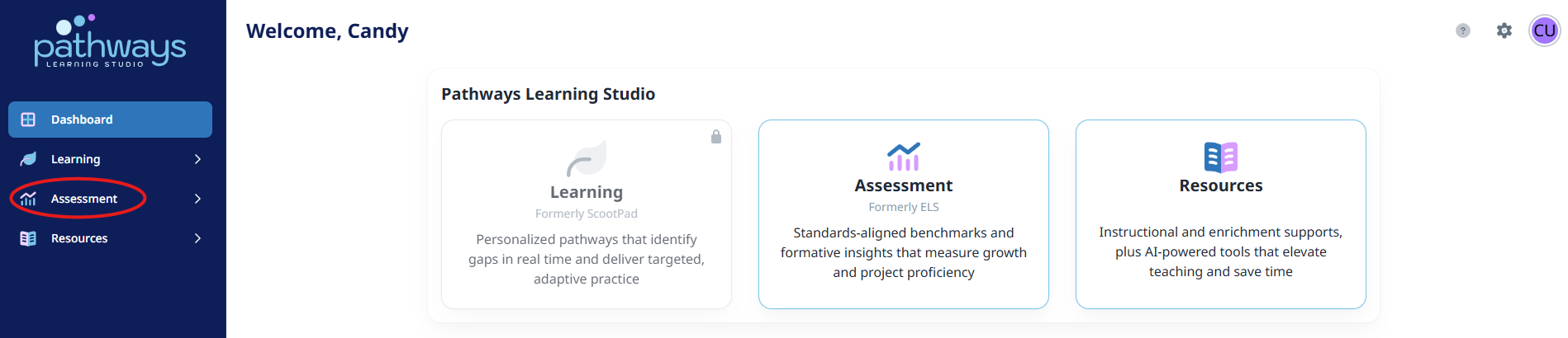 1. Login to your Pathways Assessment account through Clever, ClassLink, or at pathwayslearningstudio.com.