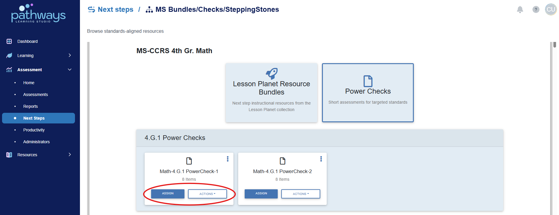7. Choose the blue ‘Assign’ button to assign a PowerCheck online or choose ‘Actions’ to view the worksheet.
