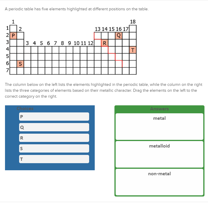 Drag and drop/line match: Drag and drop/line match allows students to place a list of options into a specific location within an interaction area.