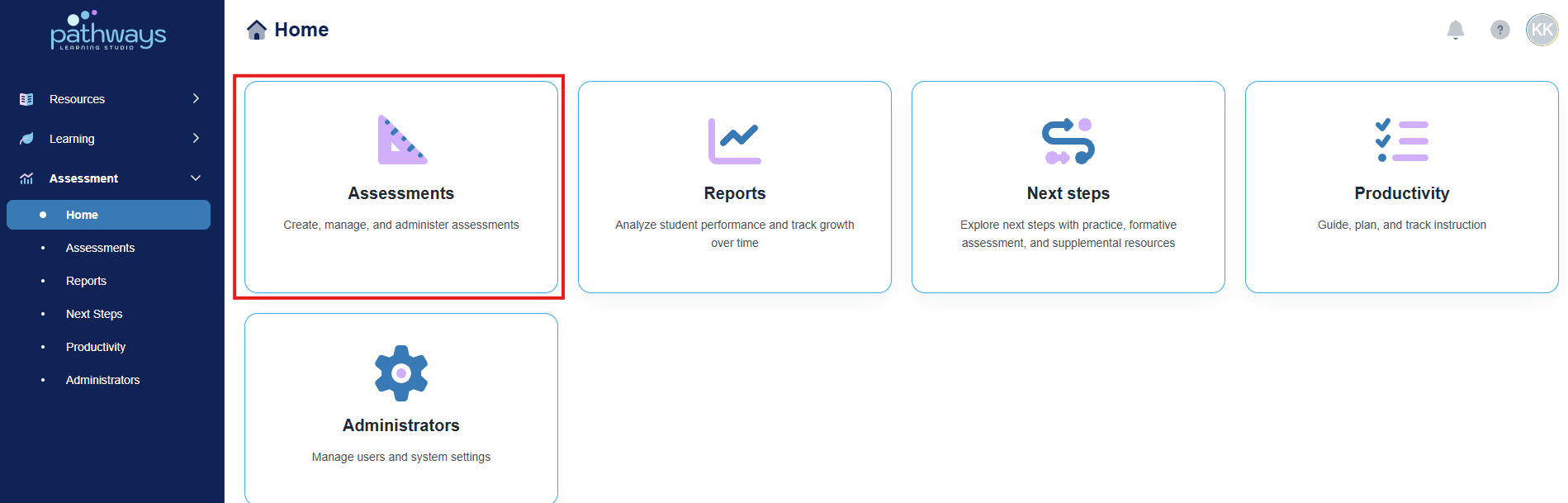 2. Navigate to 'Assessment' → 'Home.'
