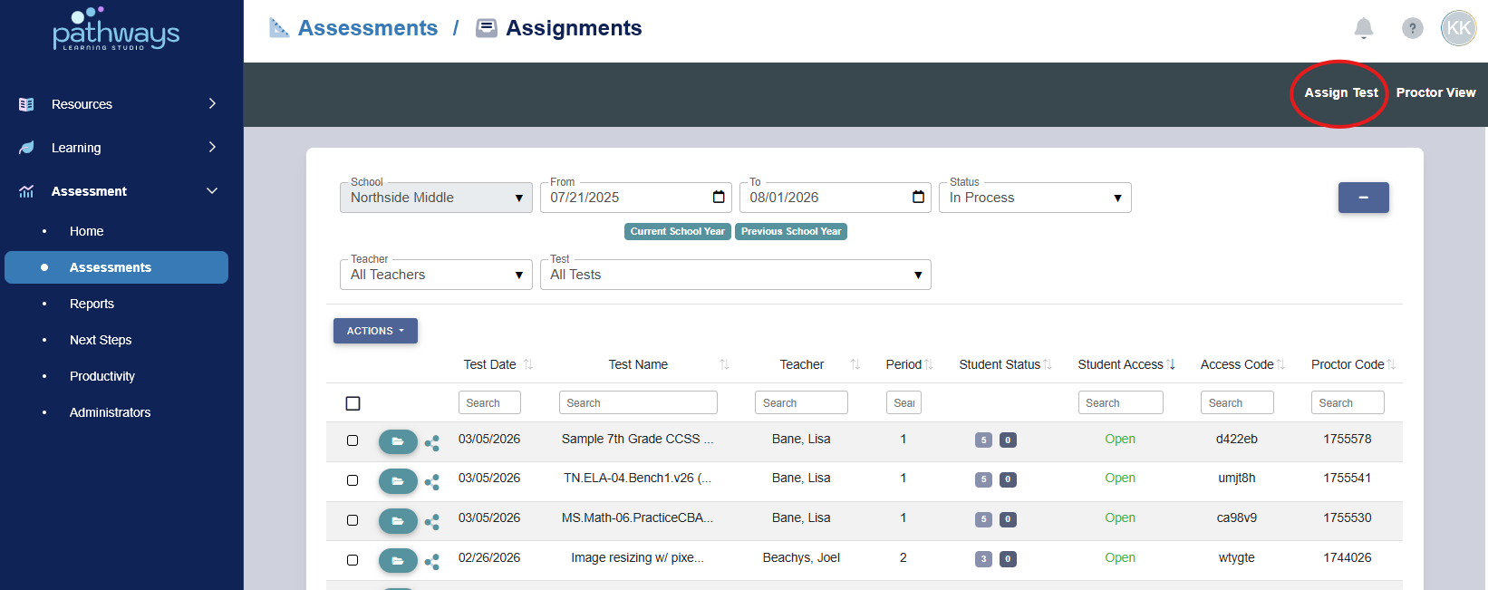 5. Select 'Assign Test' in the top right corner.