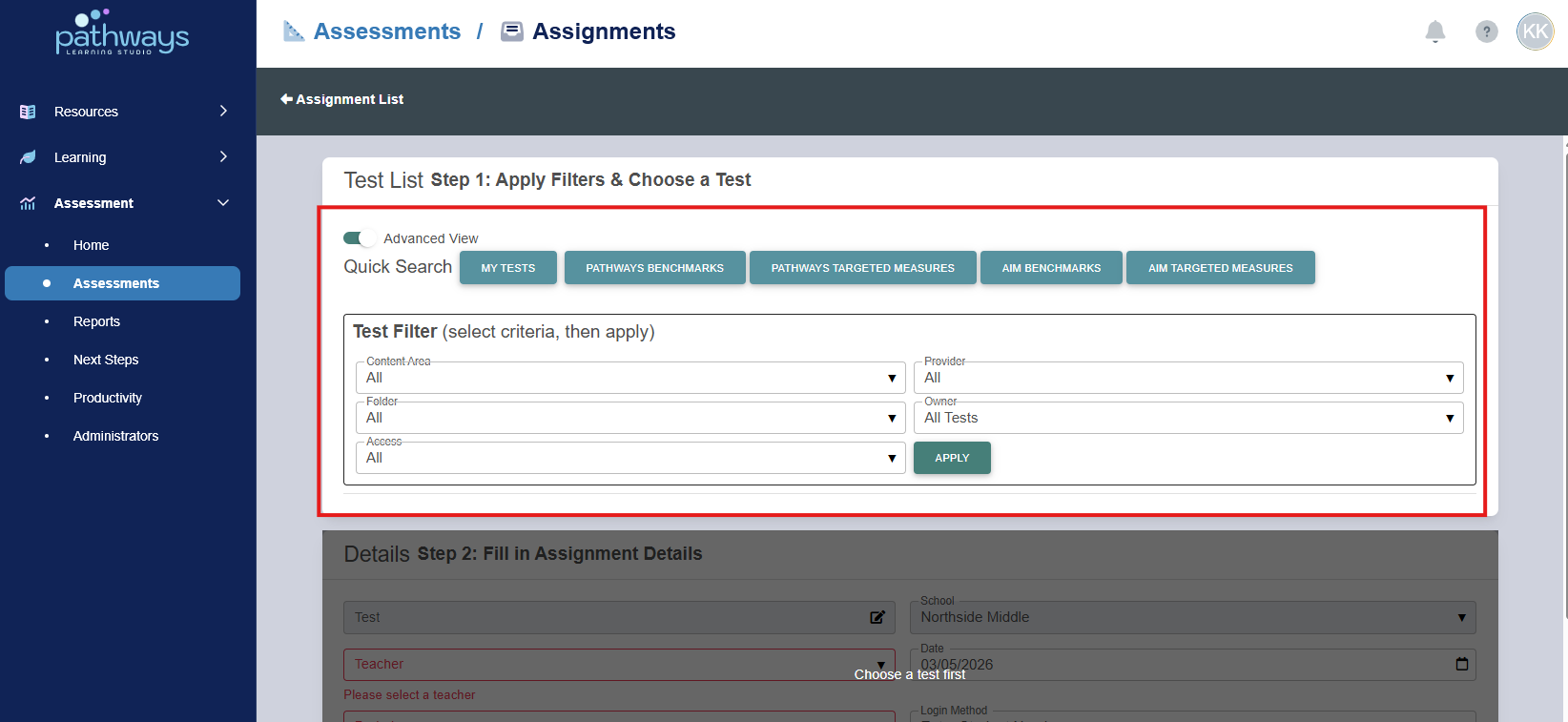 This article will explain how to assign an assessment through the assignments portal.