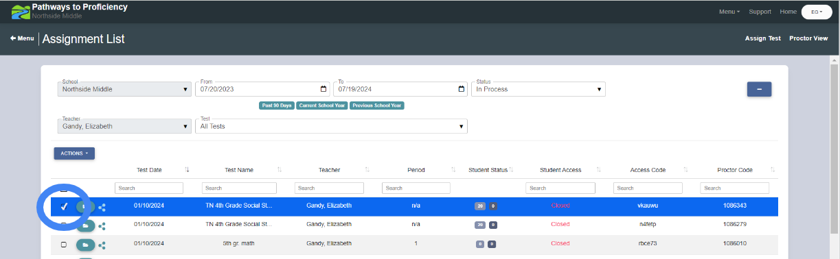 2. Navigate to Pathways to Proficiency -> Measures -> Assignments.
