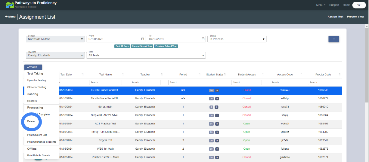 Before attempting to delete an assignment, note that an assignment can only be deleted if it is closed for testing. See the 'Closing an Assignment' article to understand this process.