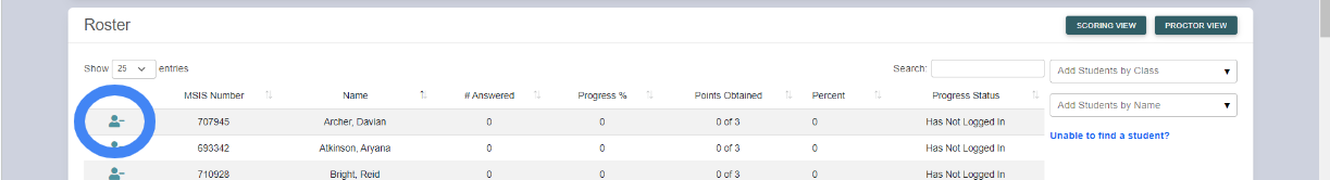 4. To delete a student from an assignment, select the blue icon to the left of the student’s name.