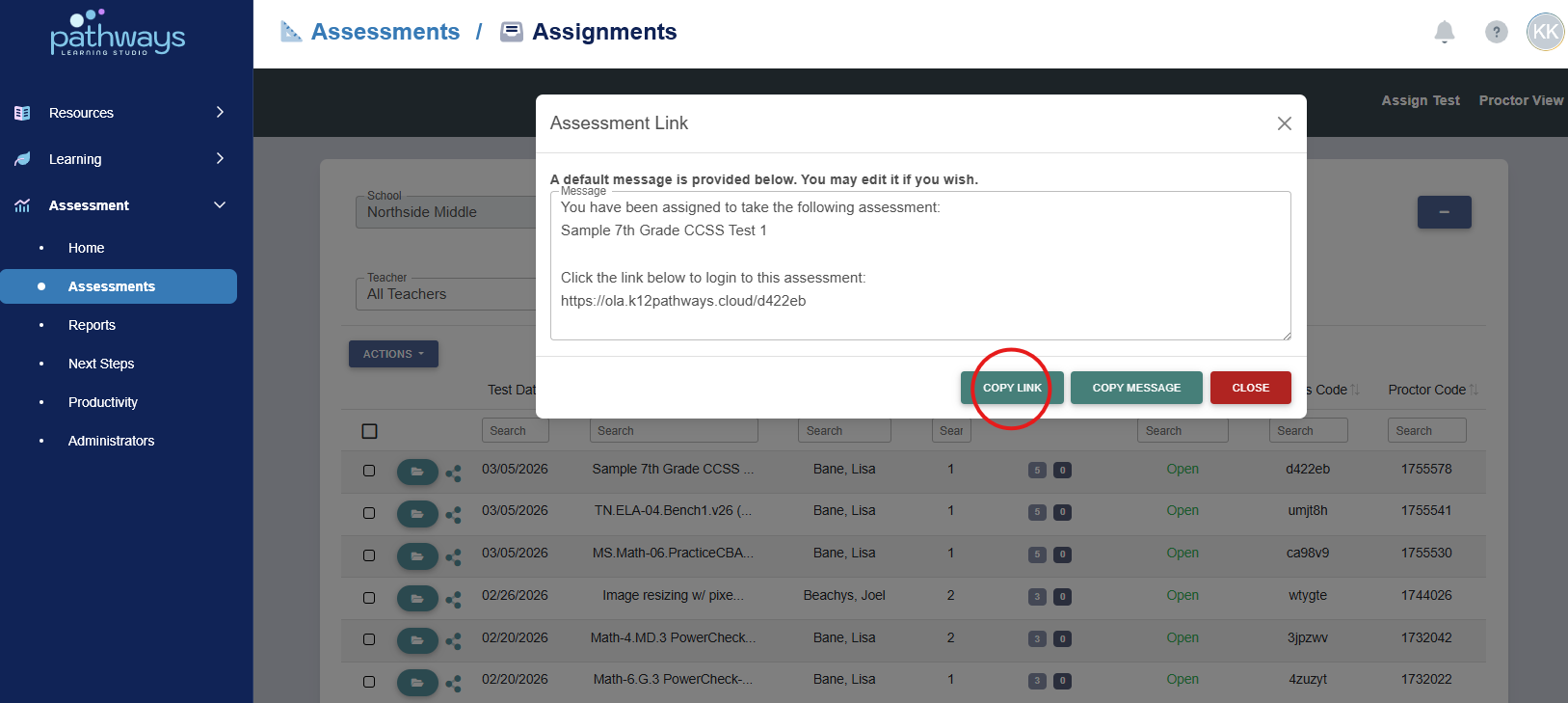6. From the pop up, choose ‘Copy Link’ or ‘Copy Message’ and share the link with students.