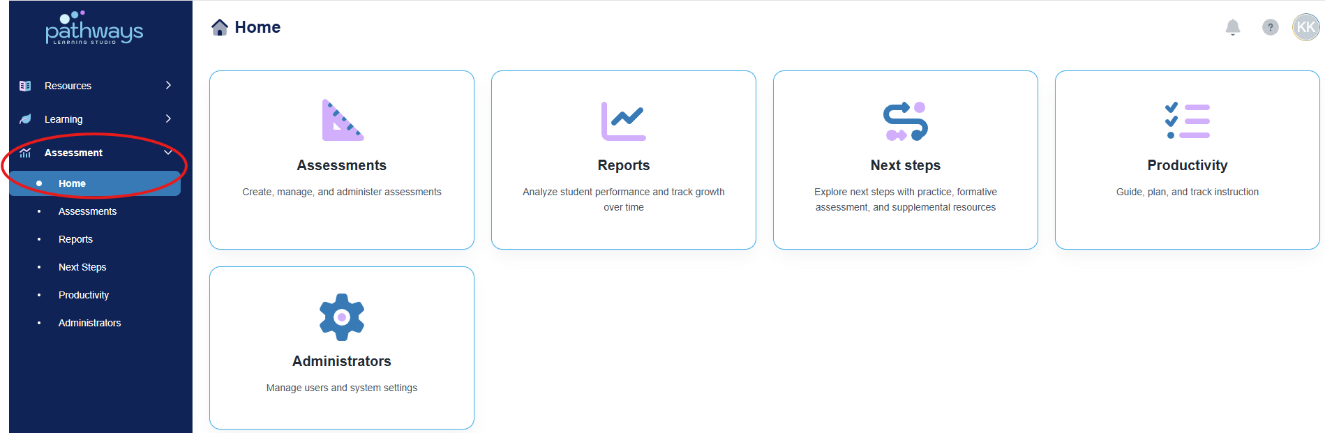 2. Navigate to 'Assessment' → 'Home.'