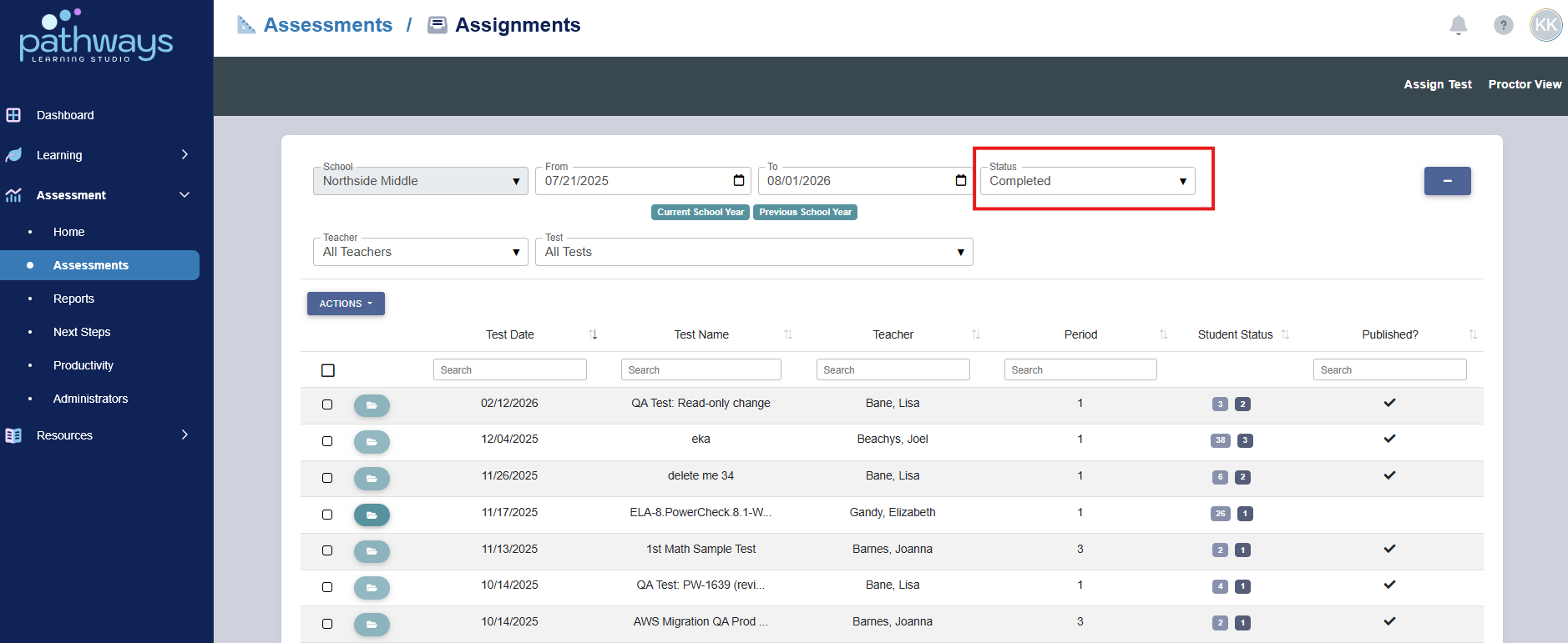 5. Change the ‘Status’ filter to ‘Completed’ at the top right of the screen.