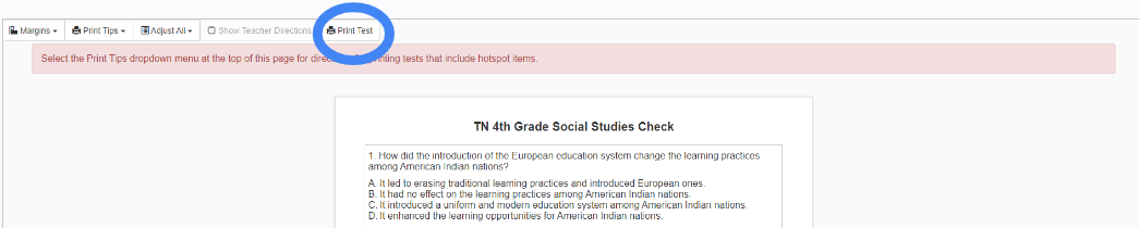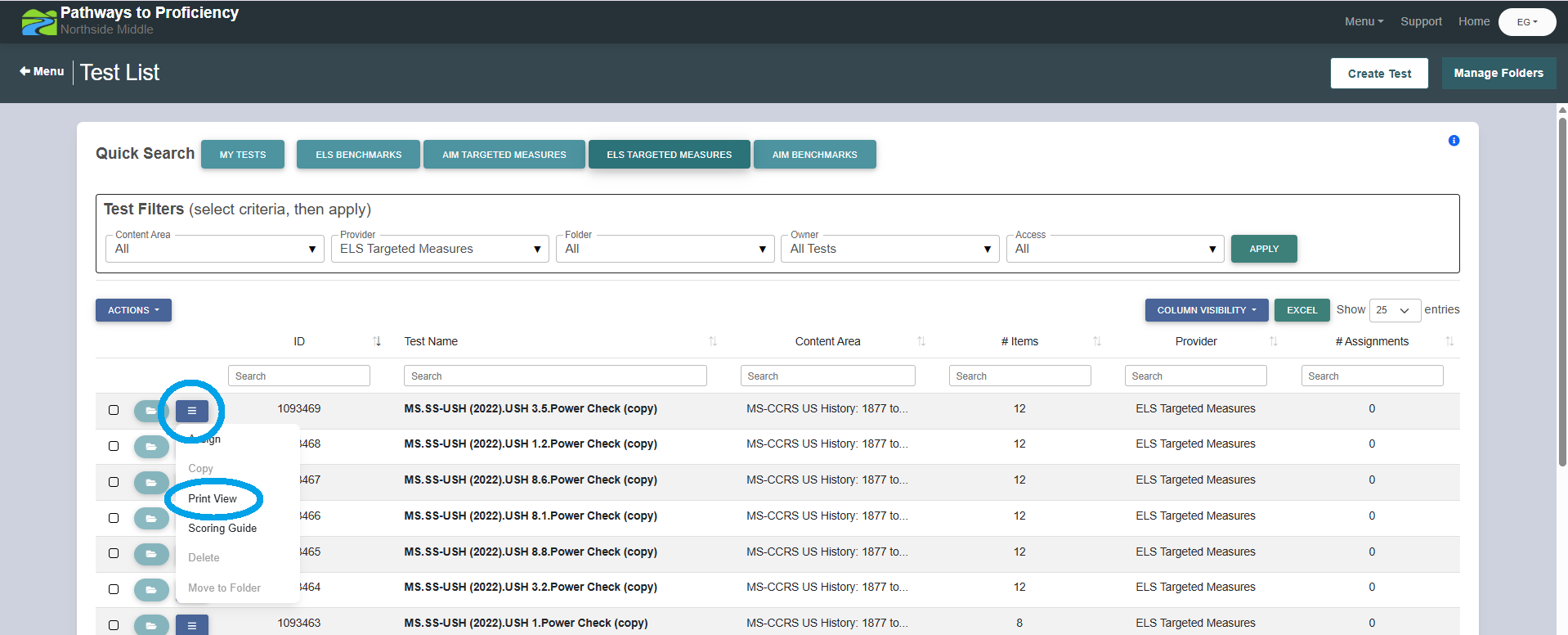 There are two ways to print an assessment: through the assignments portal and from the test list. This article will explain how to print an assessment from the test list.