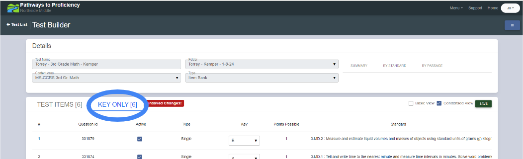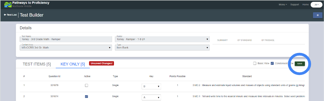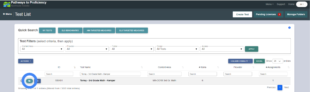 2. Navigate to Pathways to Proficiency -> Measures -> Tests.