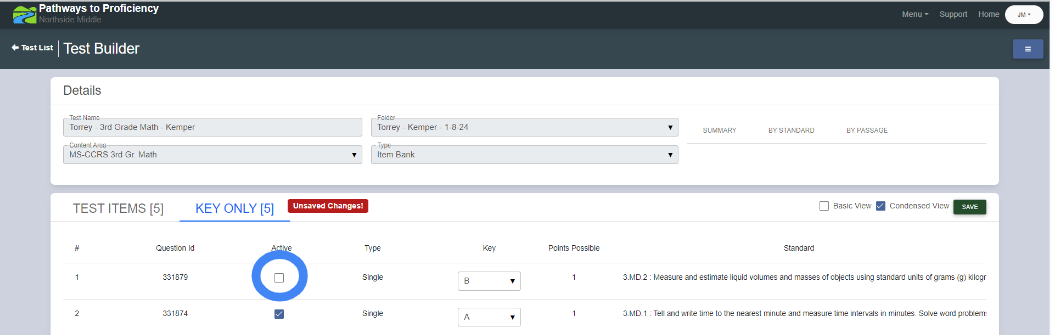 5. Locate the item you wish to deactivate, and uncheck the box under the ‘Active’ Column.