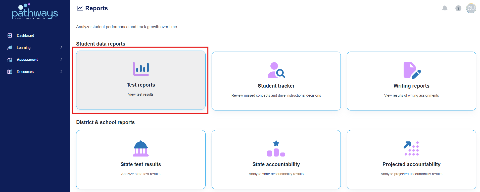 3. Navigate to 'Reports' located under 'Assessment' on the left-hand navigation bar.