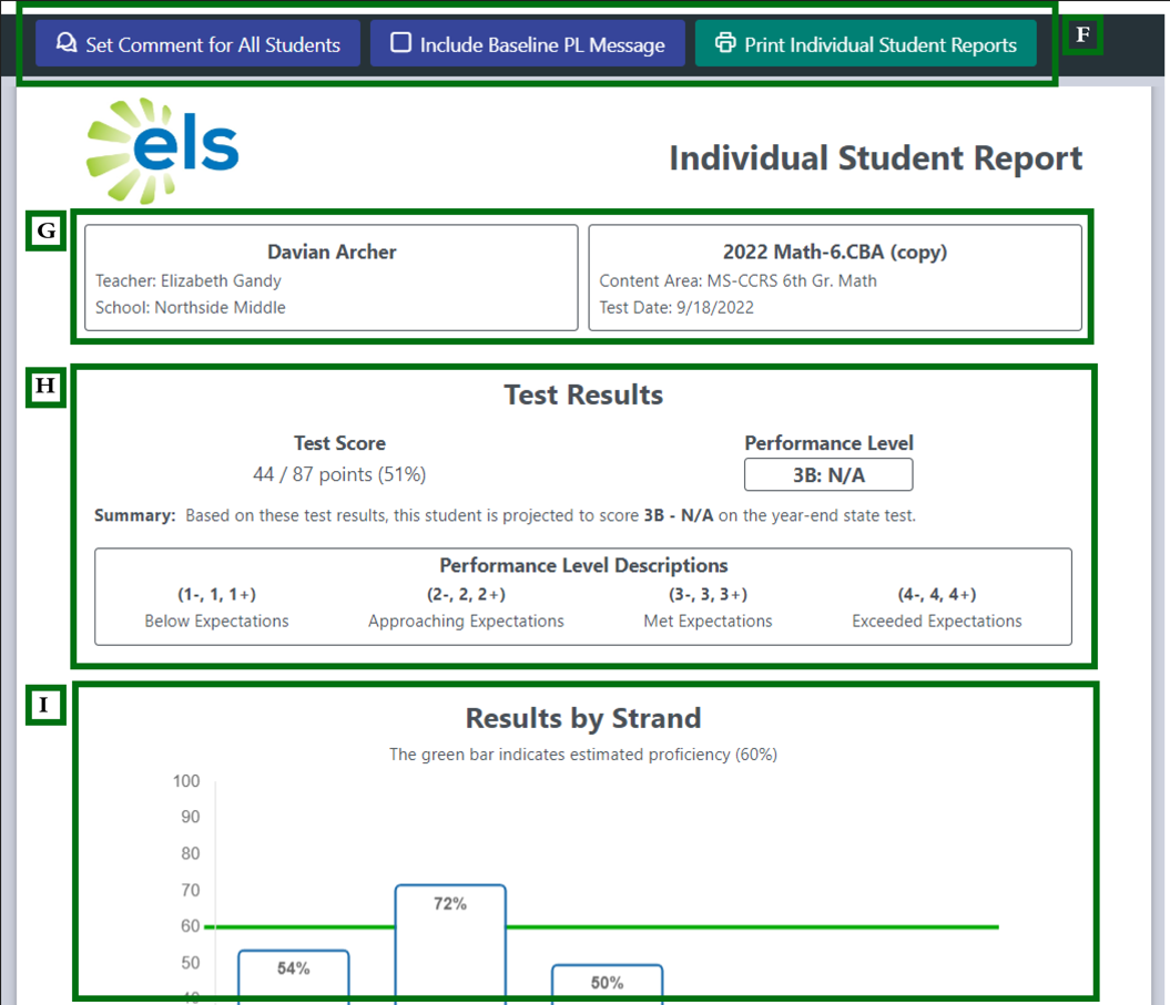 - Include Baseline PL message: includes the student’s baseline score (from previous year’s state assessment) when available.