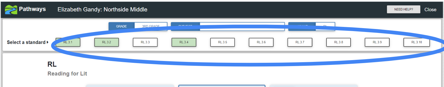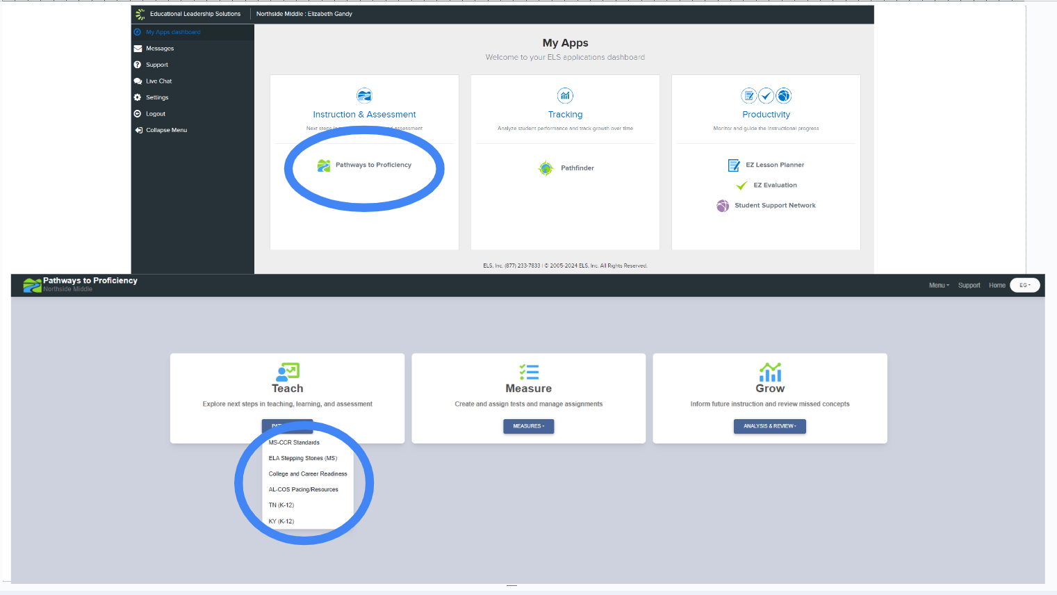 2. Navigate to Pathways to Proficiency -> Pathways -> Select Corresponding State/Standards.
