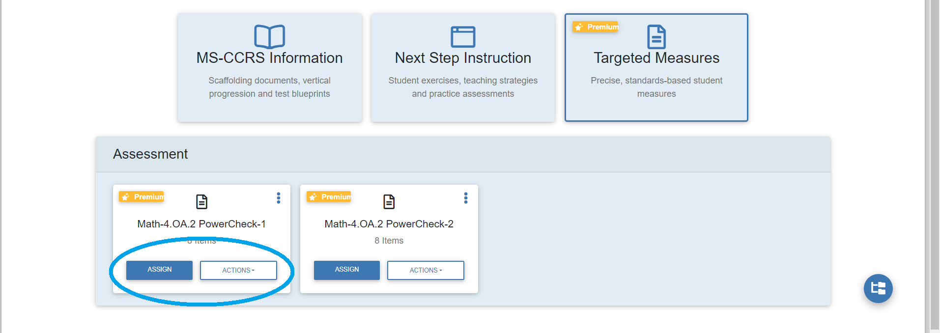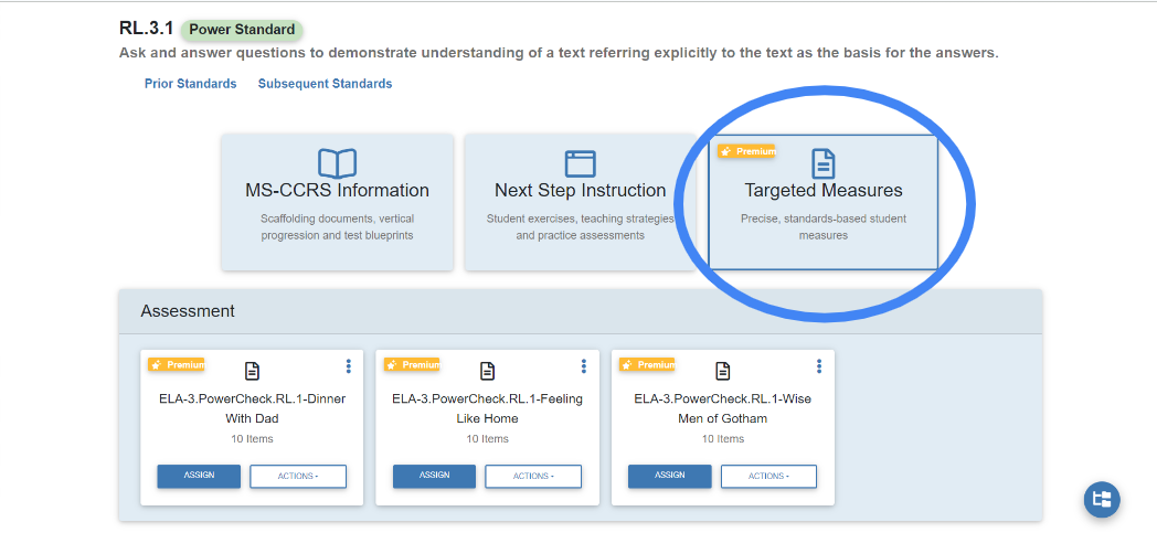 4. Select ‘Targeted Measures’ to view assessments available for the standard.