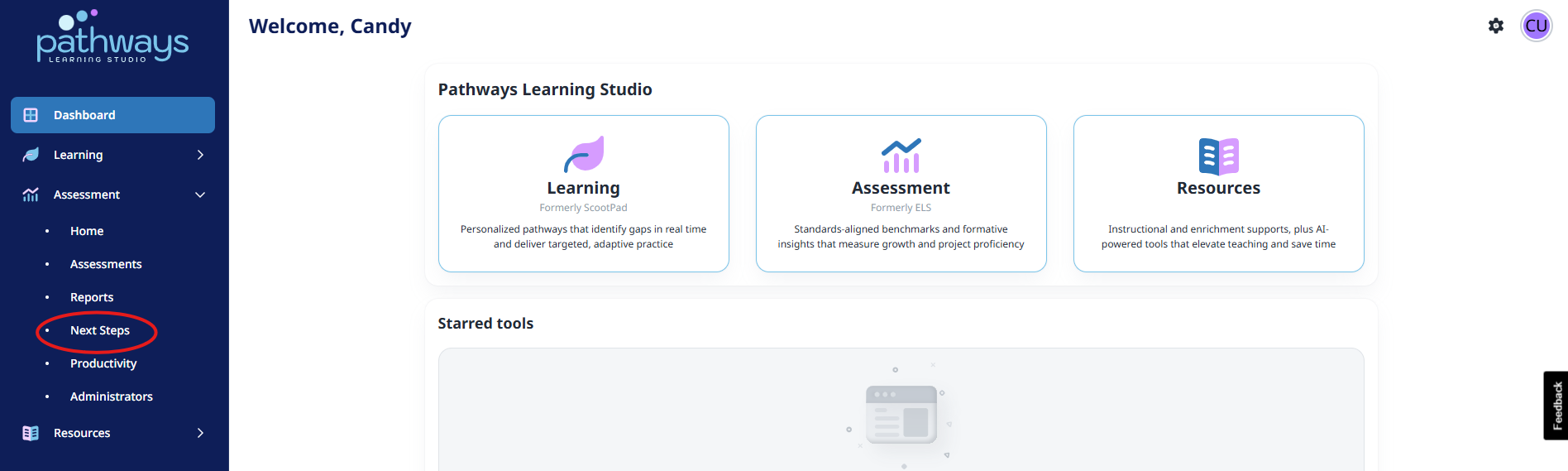 3. Navigate to 'Next Steps' located under 'Assessment' on the left-hand navigation bar.