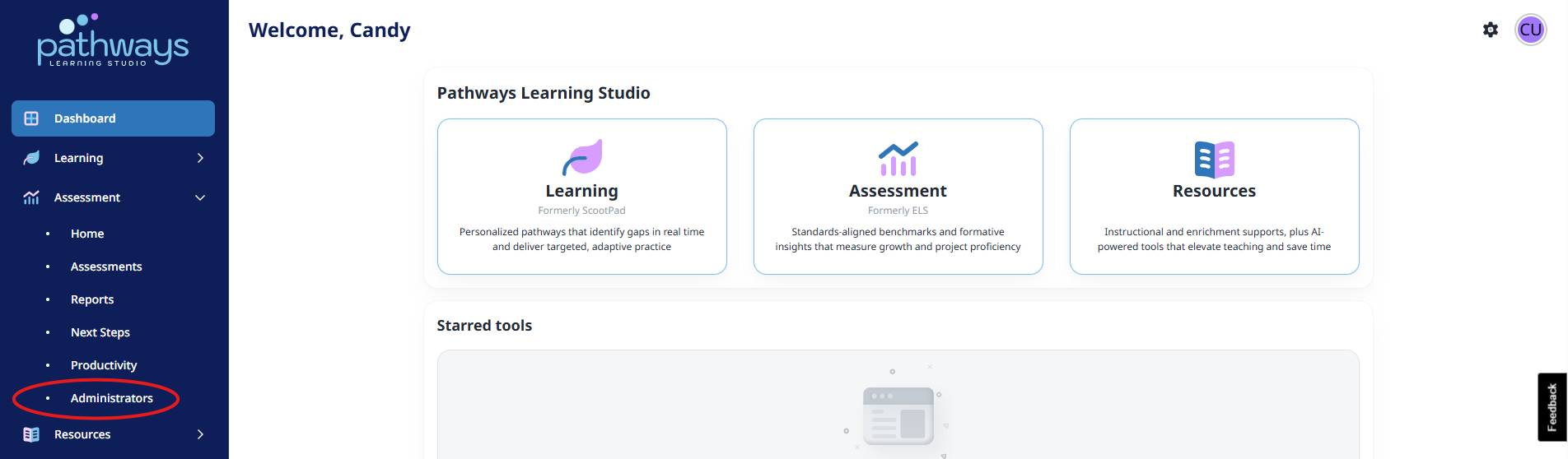 3. Navigate to 'Administrators' located under 'Assessment' on the left-hand navigation bar.
