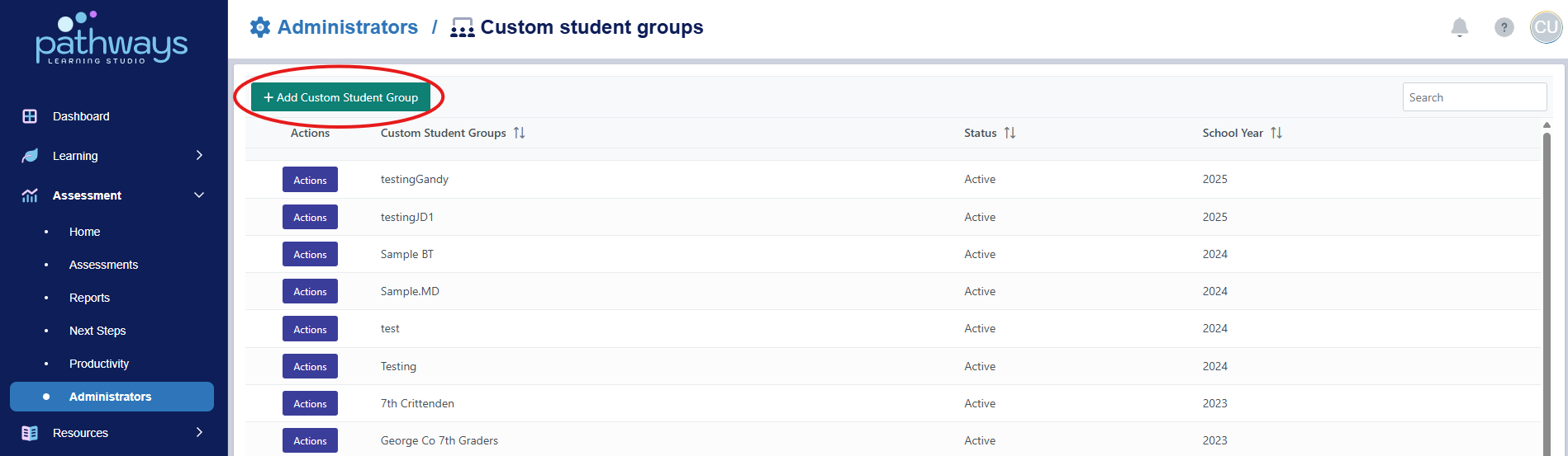 5. Select 'Add Custom Student Group.'