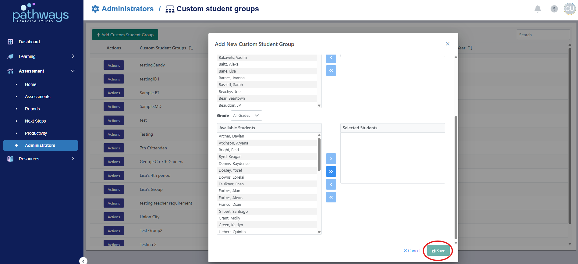 10. Once all students are added, click 'Save.'