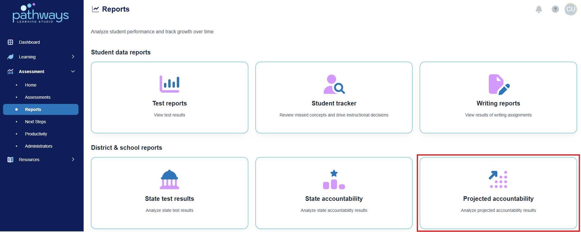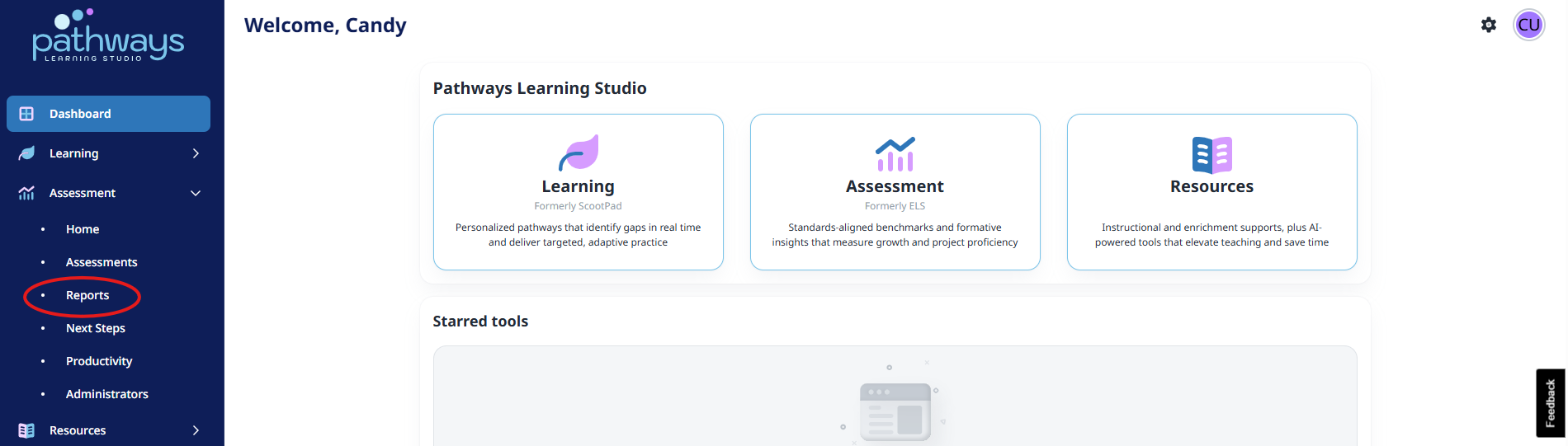 1. Login to your Pathways Assessment account through Clever, ClassLink, or at pathwayslearningstudio.com.