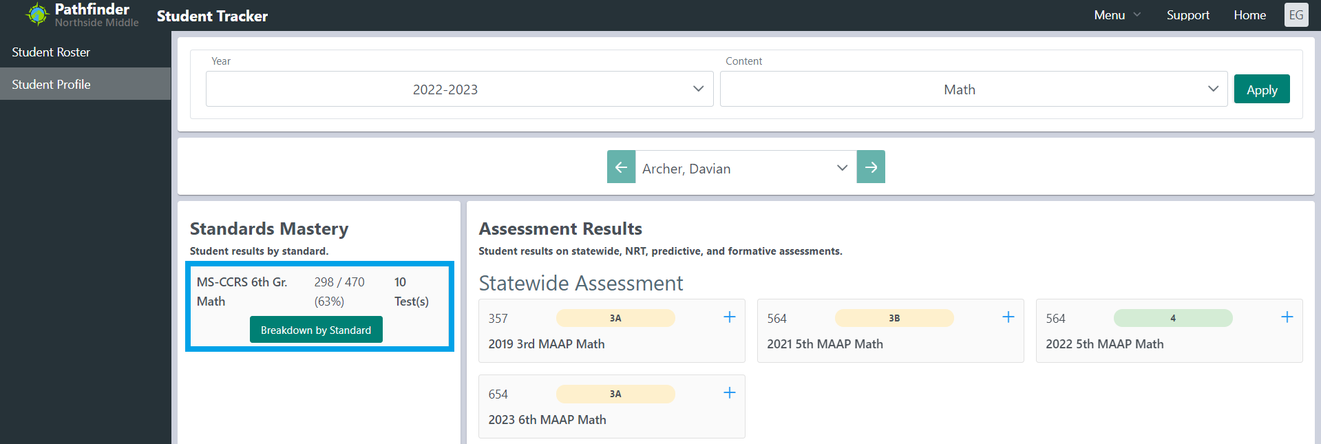 6. Select ‘Breakdown by Standard’ on the left side of the screen.