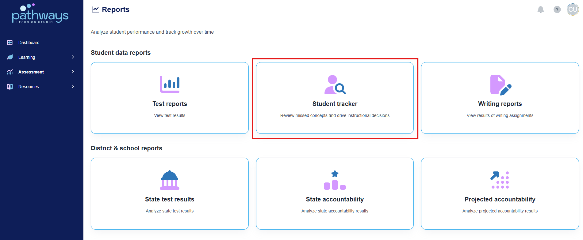 3. Navigate to 'Reports' located under 'Assessment' on the left-hand navigation bar.