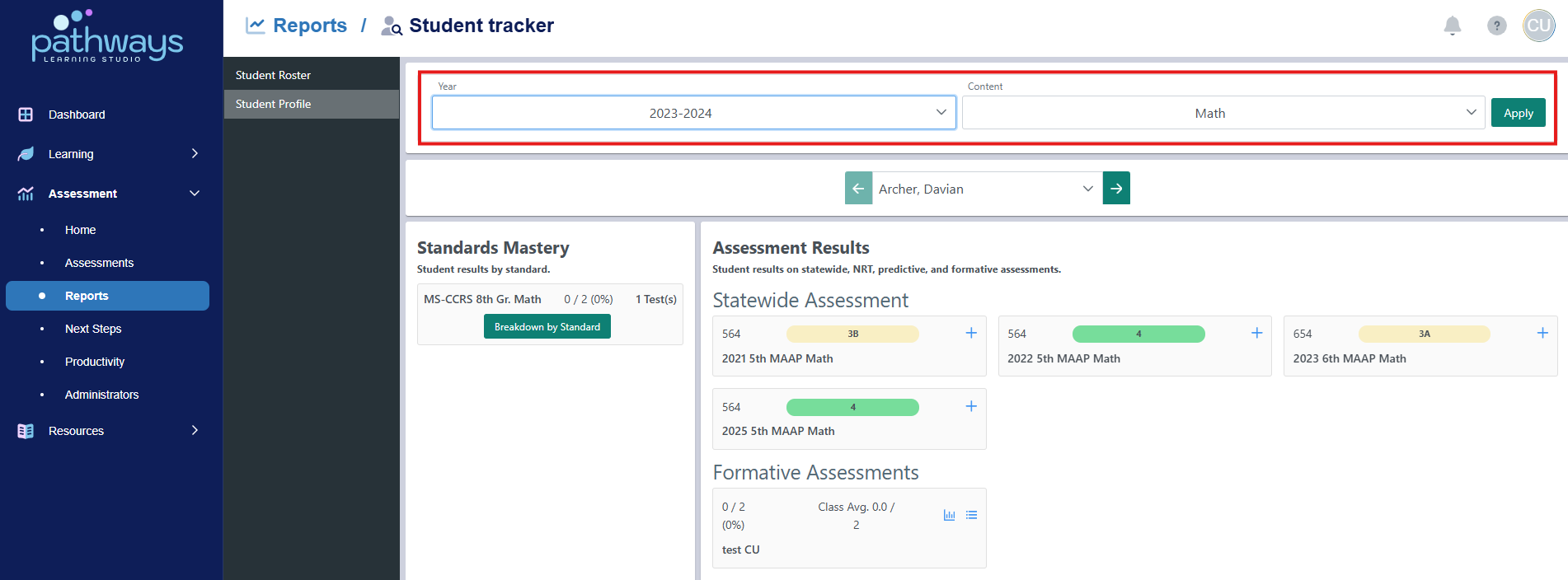 9. Choose which assessments you wish to include in the breakdown by standard.