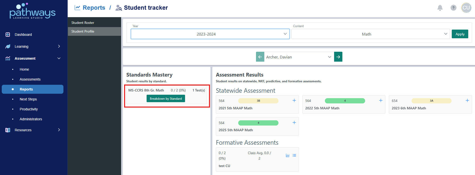 8. Select ‘Breakdown by Standard’ on the left side of the screen.