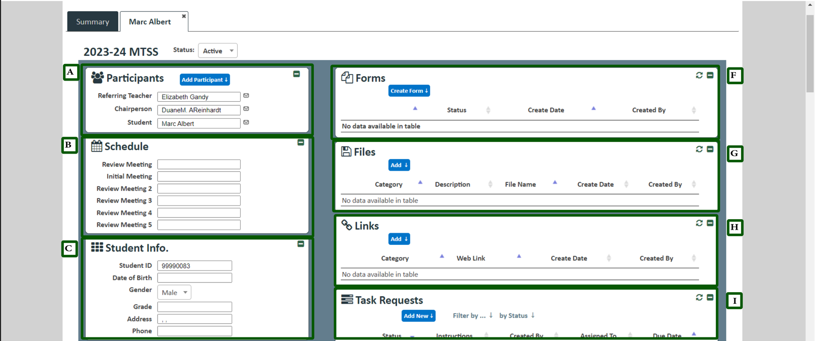 - Add student information to share with participants in the student’s tier process.