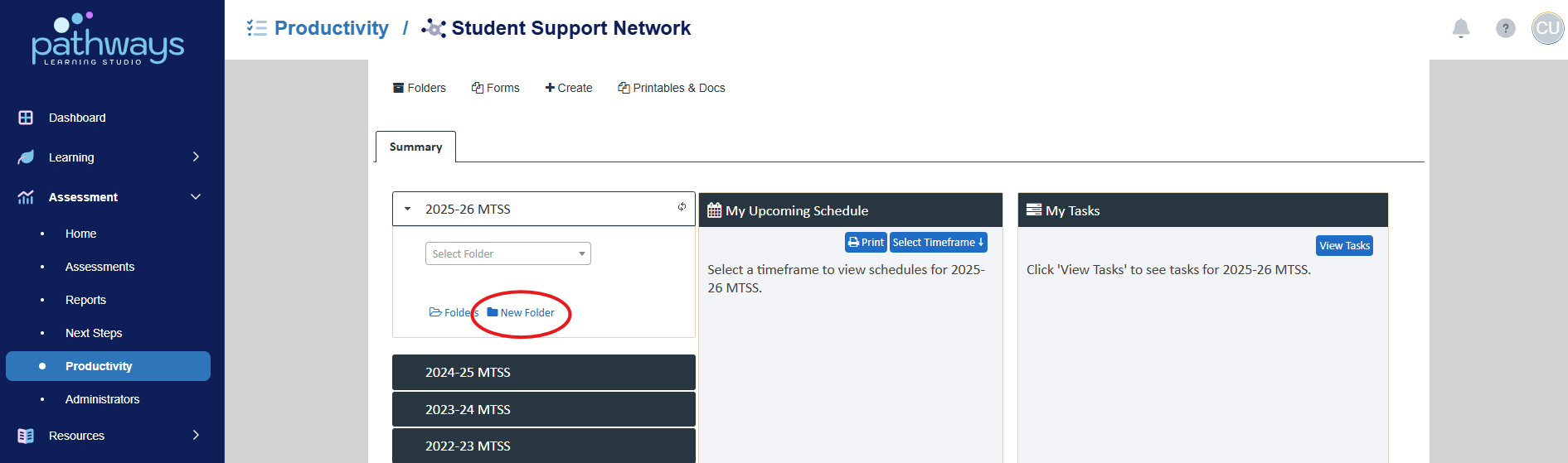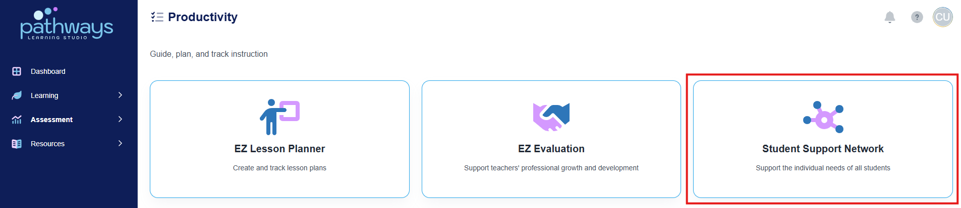 4. Select 'Student Support Network' from the Productivity dashboard.