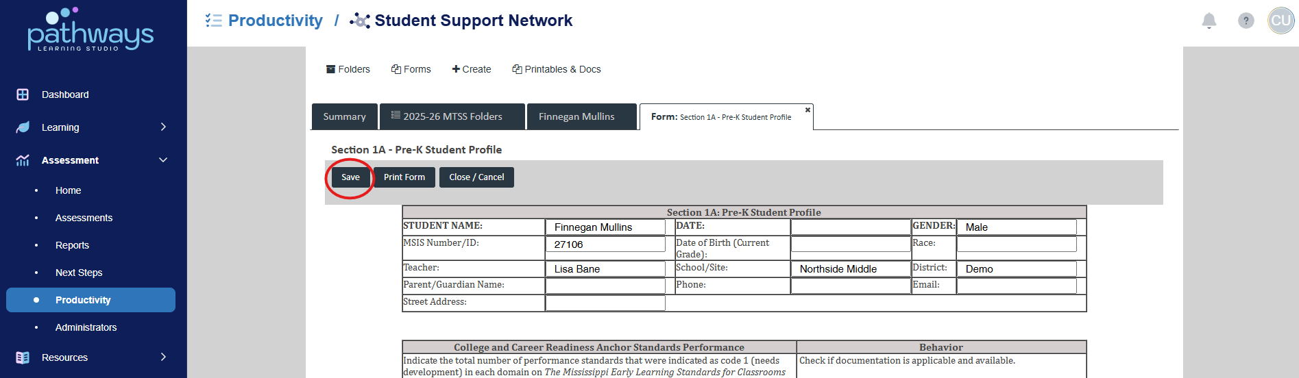 3. Navigate to 'Productivity' located under 'Assessment' on the left-hand navigation bar.