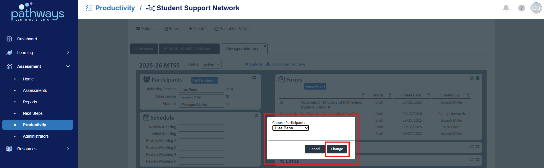 9. Choose which participant you wish to be able to contribute to the form, then press ‘Change.’