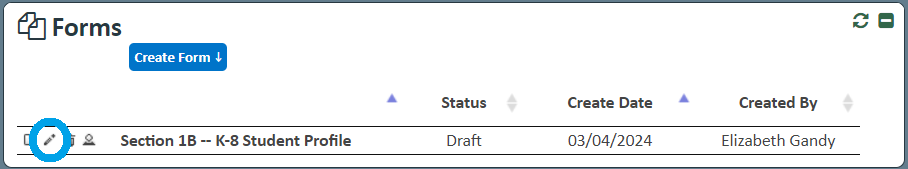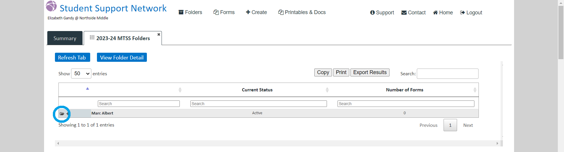 4. Choose the folder icon to the left of the student whose forms you wish to manage.
