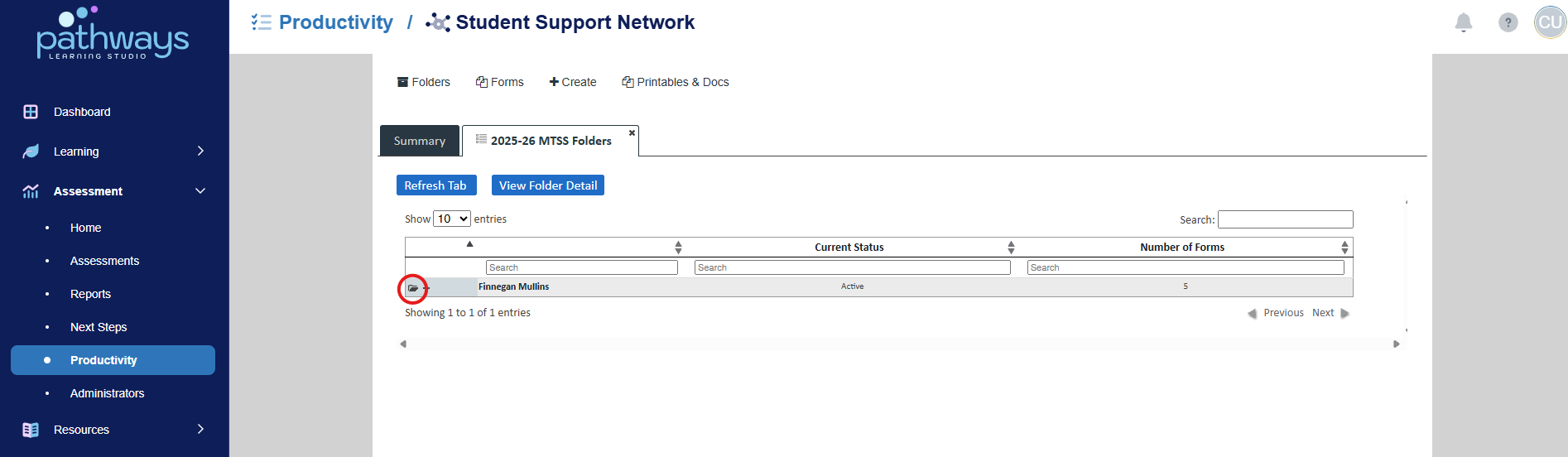 6. Choose the folder icon to the left of the student whose forms you wish to export.
