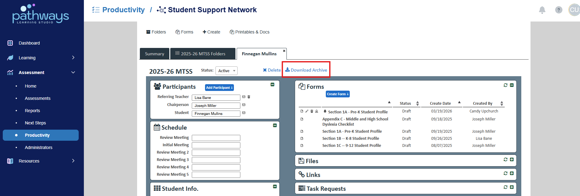 If a student has moved to a different school, you have the option to export their tier folder to the new school. Only administrator accounts have this option.