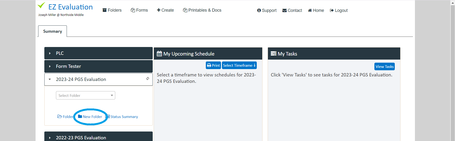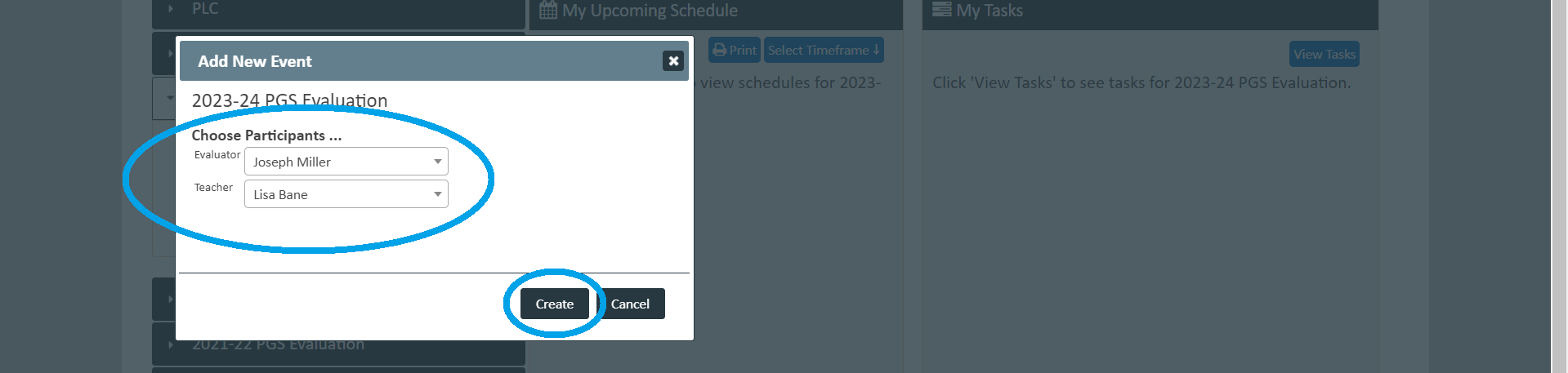 4. Choose the evaluator and the teacher for the folder, then select ‘Create.’