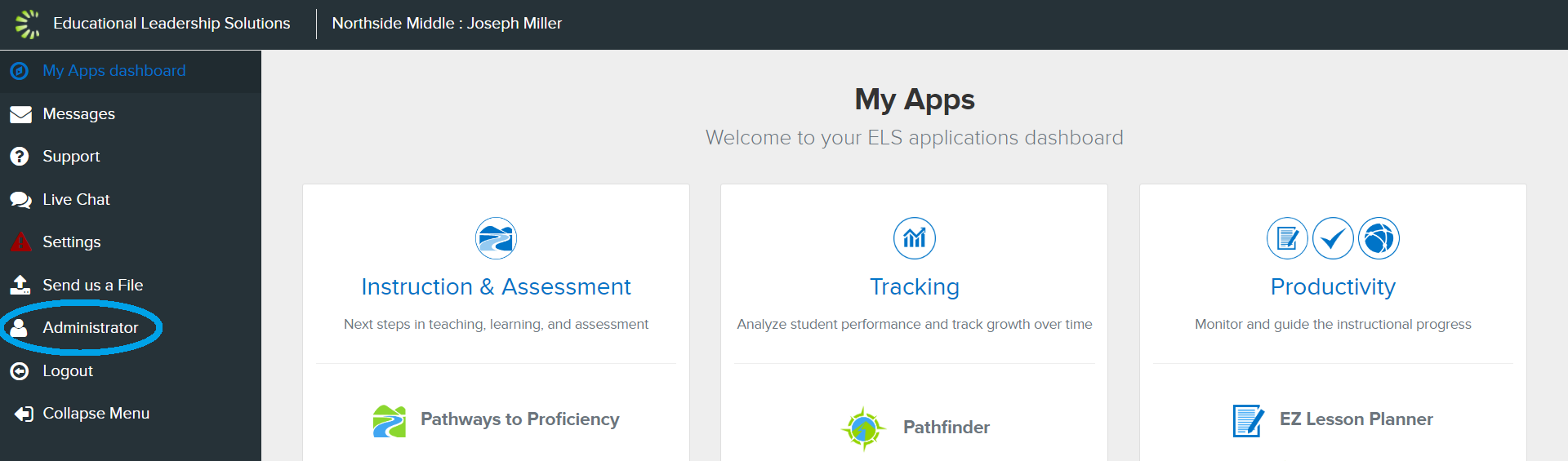 2. Select ‘Administrator’ from the left side dashboard.