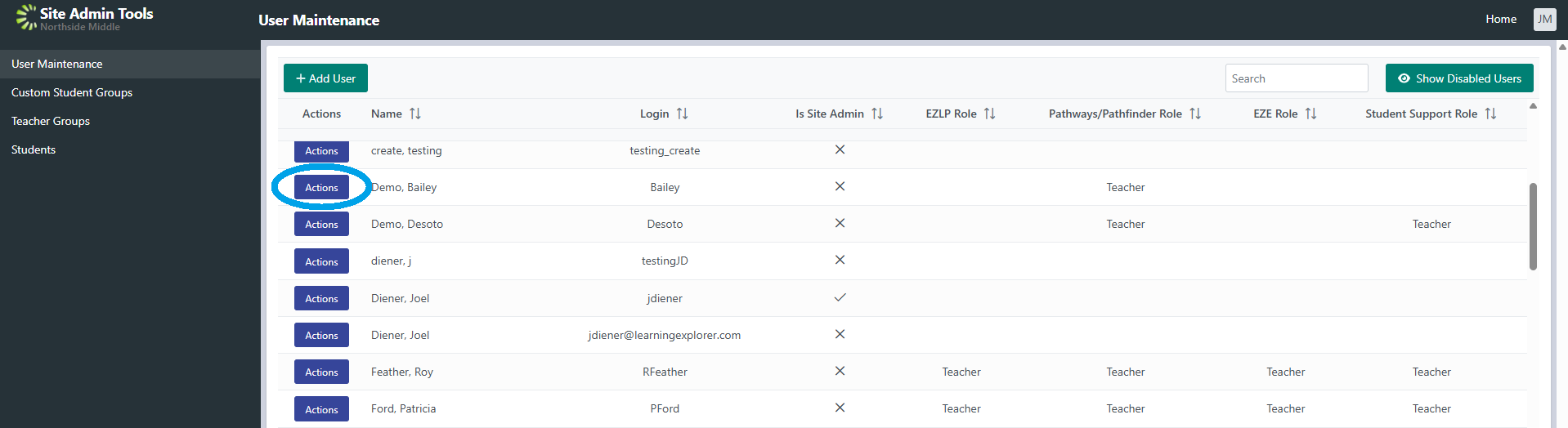 5. If the teacher is not in the Pathways system, add them by selecting the ‘Add User’ button at the top left of the screen, filling out the information, then selecting ‘Save.’