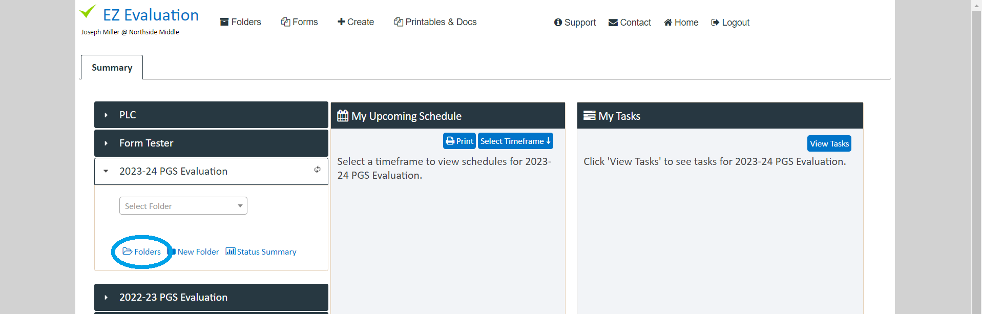 3. Choose ‘Folders’ in the top left corner of your screen under the current year’s event.