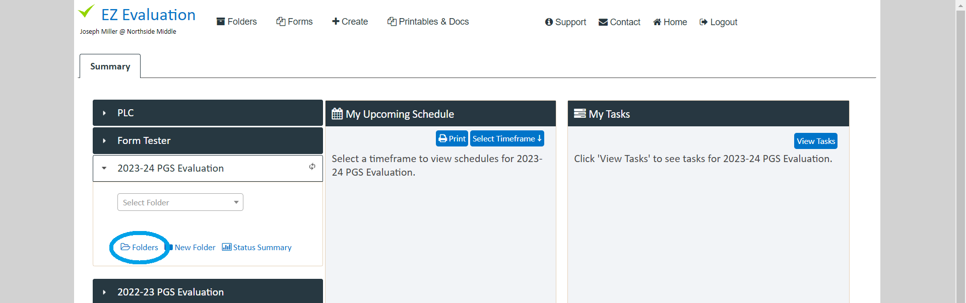 3. Choose ‘Folders’ in the top left corner of your screen under the current year’s event.