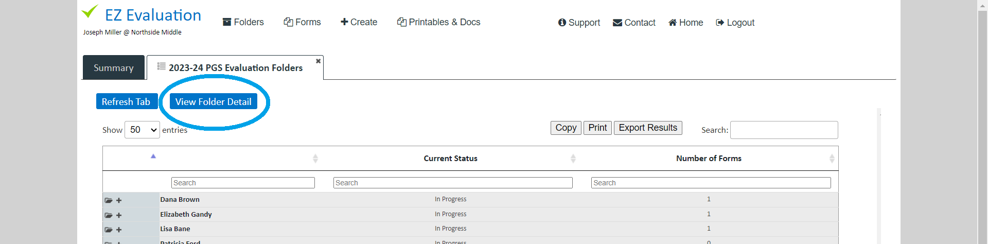 4. Choose the blue ‘View Folder Detail’ button above the list of folders.