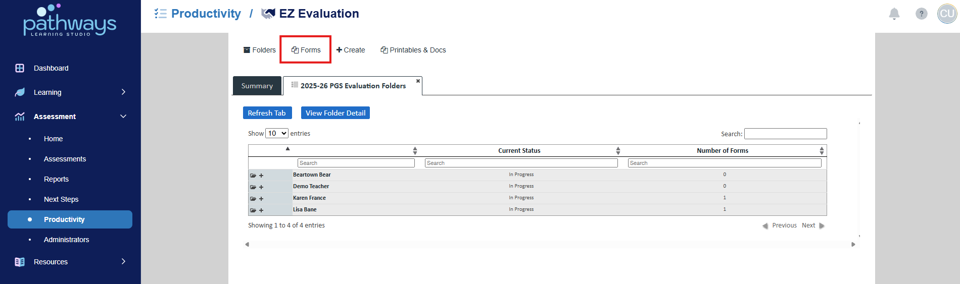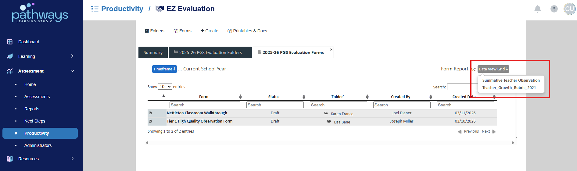 4. Select 'EZ Evaluation' from the Productivity dashboard.