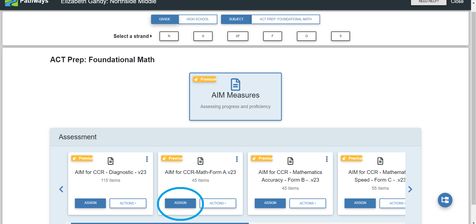 5. To assign a practice test online, choose the blue ‘Assign’ button that corresponds to the test you wish to assign.