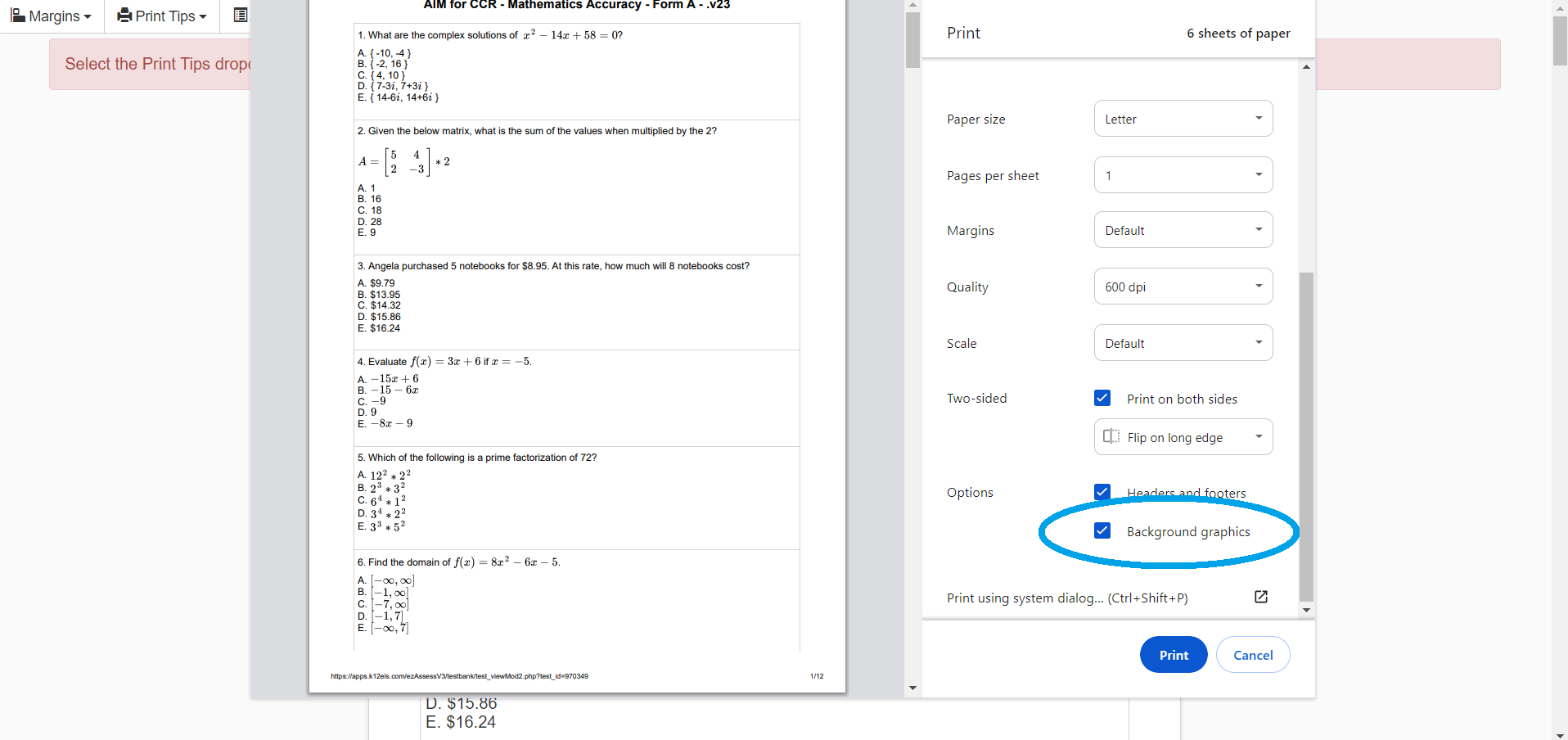 c. Ensure that ‘Background Graphics’ is on before printing.