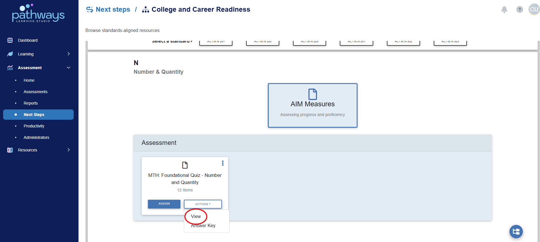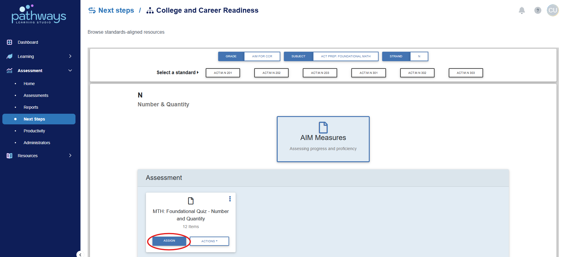 8. There is one quiz for each strand. To assign the quiz online, press the blue ‘Assign’ button.
