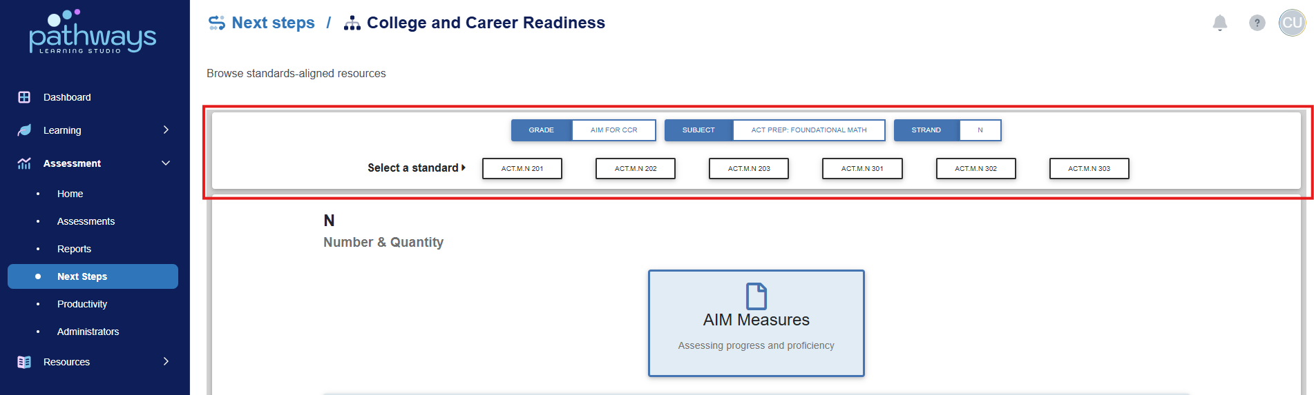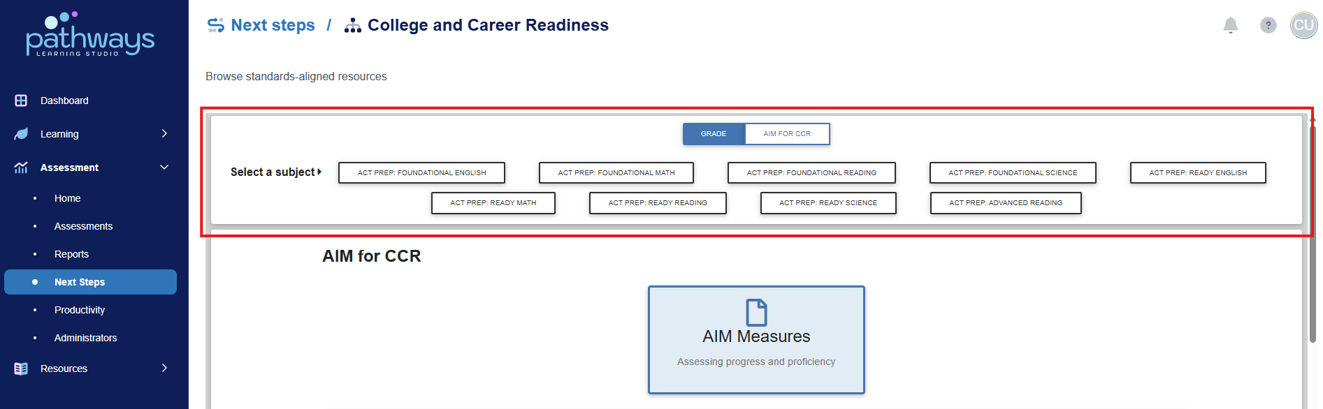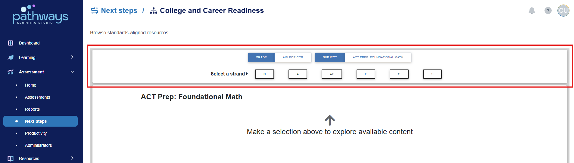 4. Select 'College and Career Readiness' from the Next steps dashboard.