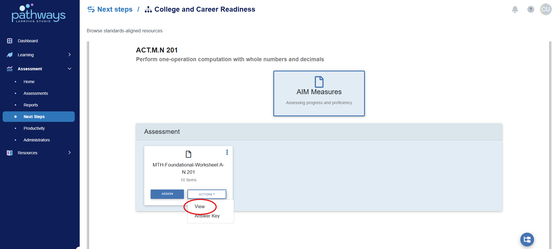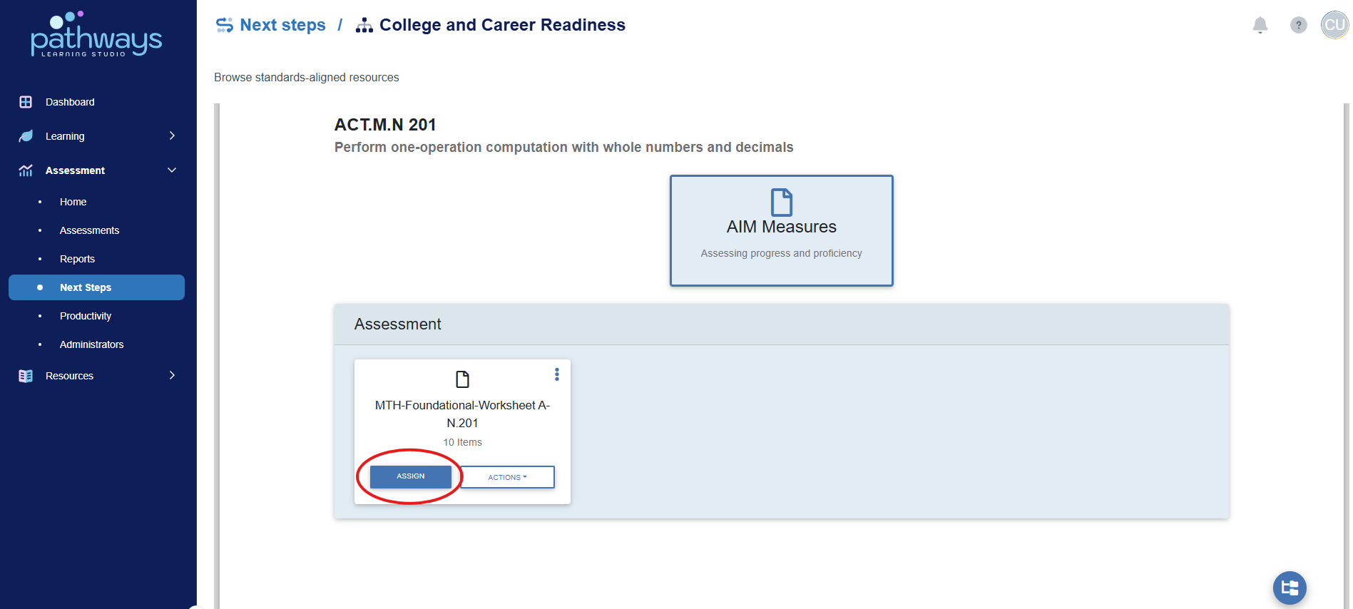 9. There is one worksheet for each standard. To assign the worksheet online, press the blue ‘Assign’ button.