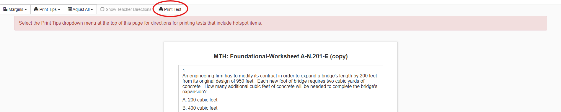6. Select the foundational subject for which you wish to access a worksheet. For Math and Science, 'Foundational' contains items at the 200-300 level, and 'Ready' contains items at the 400-500 level.